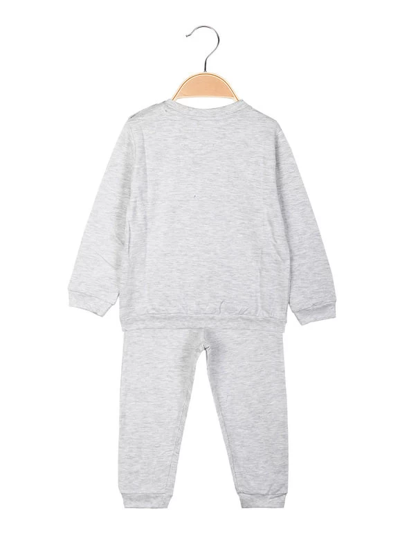 Pigiama lungo in caldo cotone composto da: maglietta a maniche lunghe, bottonicini a clip sulle spalle, stampa disegno sul davanti; pantaloni con elastico in vita e polsini sul finale.