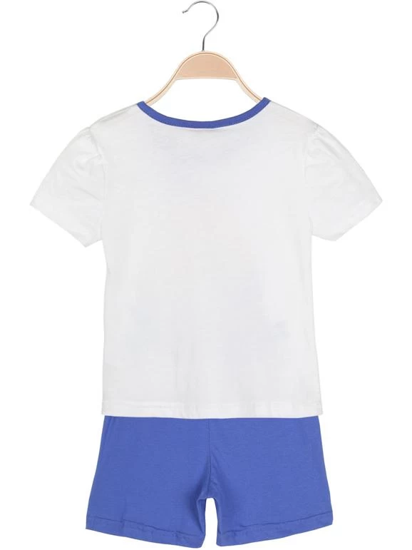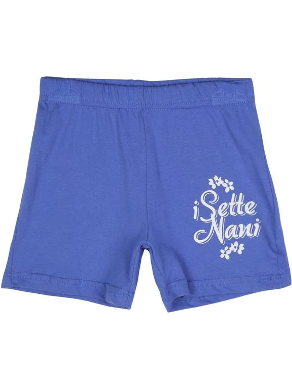 T-shirt con stampa sul davanti, bottoncini laterali. Bermuda con elastico in vita, stampa sul davanti.
