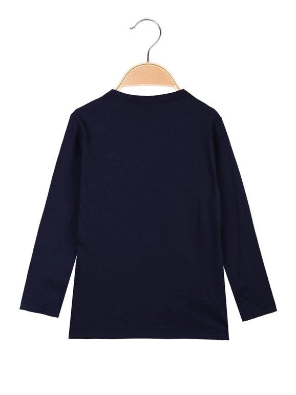Maglietta girocollo da bambina a manica lunga in cotone, stampa su fronte.