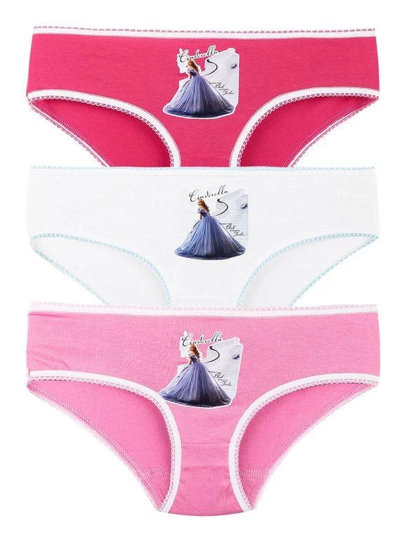 Tris di slip da bambina in cotone, stampa disegni assortiti.