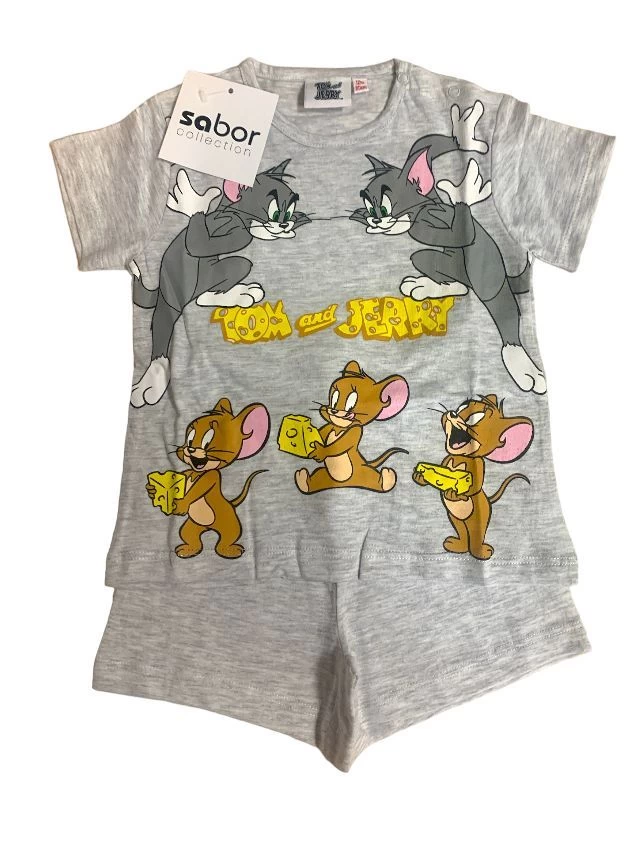 Completo Neonato cotone 100% Tom and Jerry Special Price in cotone naturale anallergico con maglia stampata con comodi bottoncini sulla spalla e pantalone corto