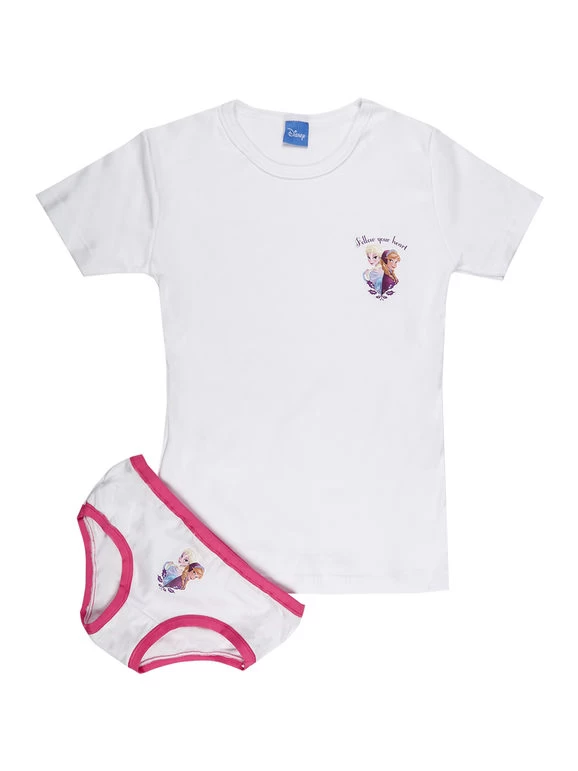 Disney Frozen Completo Intimo Da Bambina 2 Pezzi- T-shirt + Slip – Bianco