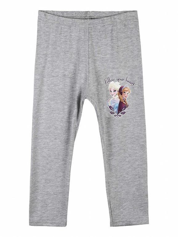 Leggings da bambina in cotone elasticizzato, elastico in vita, stampa Anna e Elsa, lunghezza a 3/4.