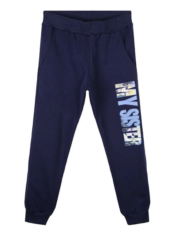 Pantaloni sportivi bambina, fascia elastica in vita, tasche frontali, polsini elasticizzati sul finale con trama a costine, stampa scritta con disegno lungo la gamba, interno in cotone felpato