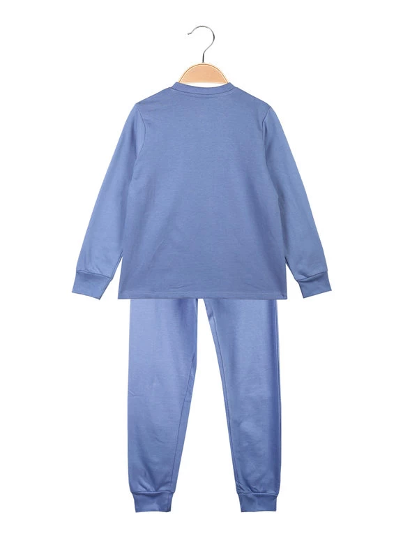 Pigiama da bambina in cotone felpato, composto da: maglietta a maniche lunghe, bottoncini sullo scollo, stampa su fronte, interno felpato; pantaloni in coordinato, con elastico in vita, polsini sul finale, interno felpato.