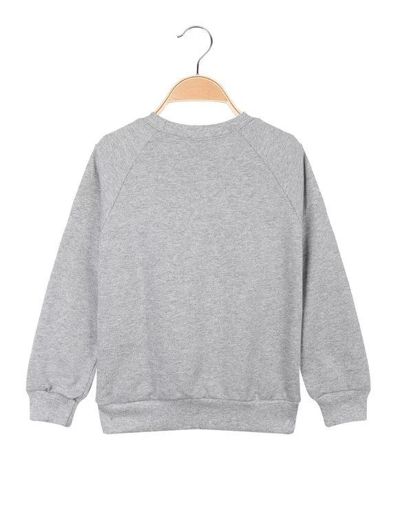Felpa girocollo da bambina, bordo finale e dei polsini in tessuto elasticizzato con trama a costine, stampa disegno sul davanti, interno in cotone garzato