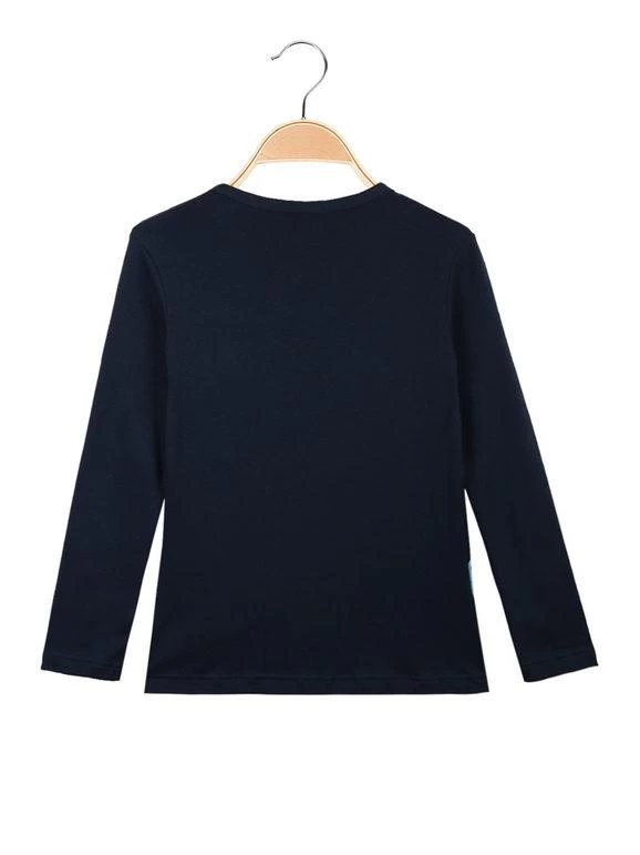 Maglietta girocollo da bambina manica lunga, stampa disegno sul davanti, interno in caldo cotone