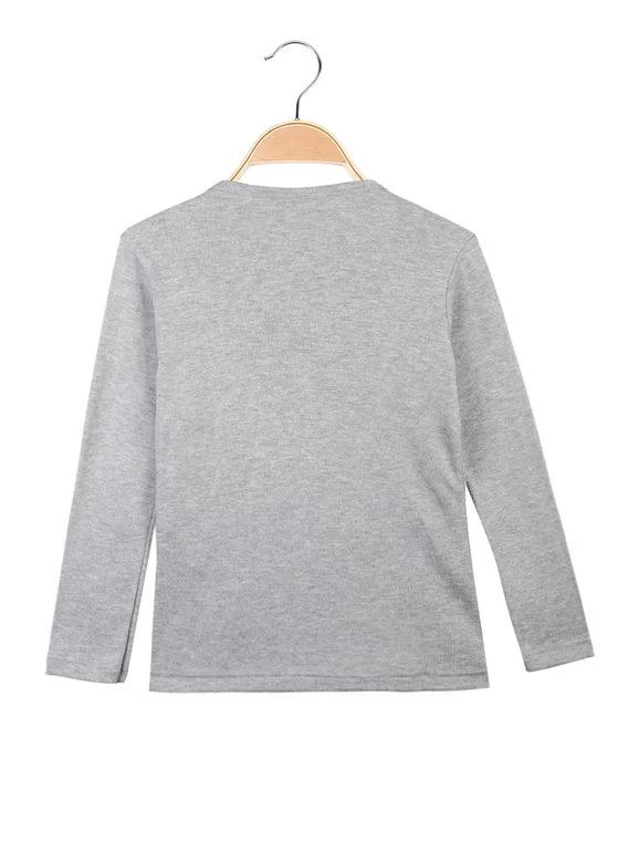 Maglietta girocollo da bambina manica lunga, stampa disegno sul davanti, interno in caldo cotone