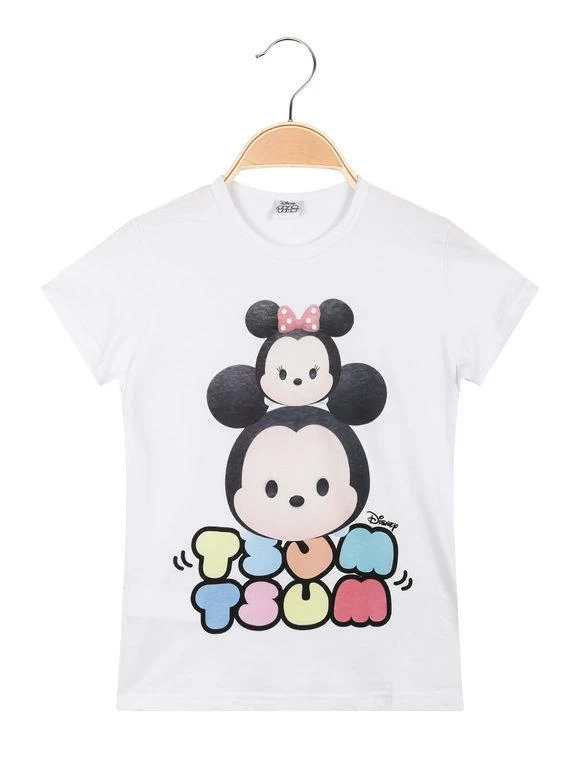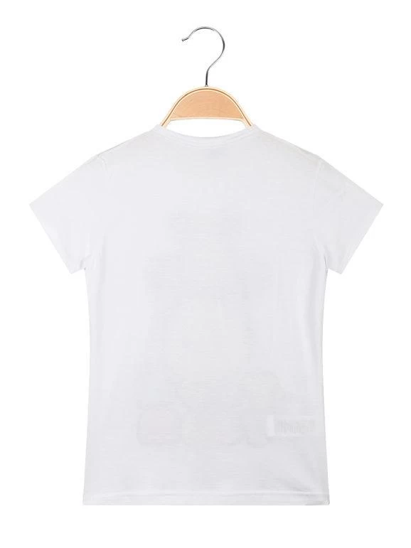 T-shirt girocollo da bambina in cotone, stampa con disegno su fronte