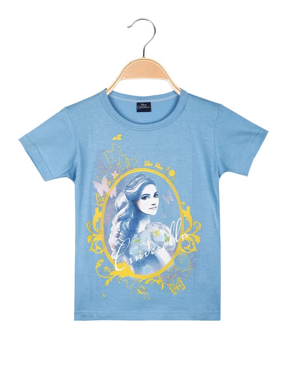 T-shirt da bambina girocollo in cotone, manica corta, stampa disegno sul davanti