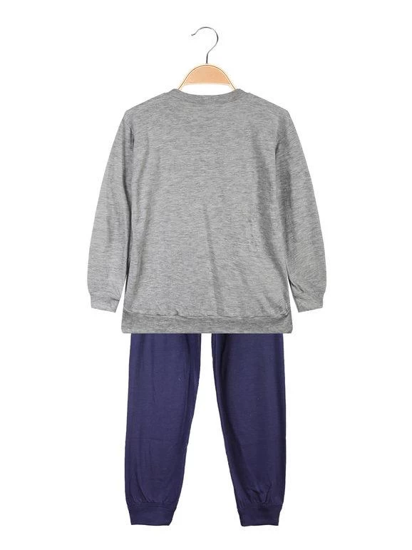 Pigiama lungo in cotone composto da: maglietta a maniche lunghe, scollo tondo con bottonicini, stampa disegno sul davanti; pantaloni tinta unita, con elastico in vita